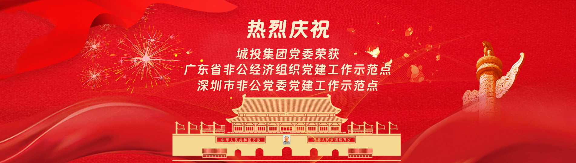 在上級黨委的正確領(lǐng)導(dǎo)下,在城投集團的大力支持下,集團黨委緊緊圍繞企業(yè)發(fā)展戰(zhàn)略,將黨建引領(lǐng)核心貫穿始終,以五心工程(即思政建設(shè)核心工程、經(jīng)營發(fā)展中心工程、企業(yè)文化向心工程、黨建品牌匠心工程、服務(wù)基層愛心工程)為抓手,大膽探索,勇于突破和創(chuàng)新,不斷形成城投黨建特色,有效輸出城投實踐經(jīng)驗,充分發(fā)揮紅色引擎作用,先后獲得深圳市非公黨委黨建工作示范點深圳市兩新組織黨建工作示范點深圳市文明單位深圳市先進(jìn)基層黨組織廣東省非公有制經(jīng)濟領(lǐng)域黨建工作示范點等榮譽稱號。